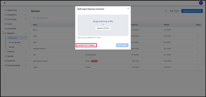 Bulk Import Sponsors via CSV