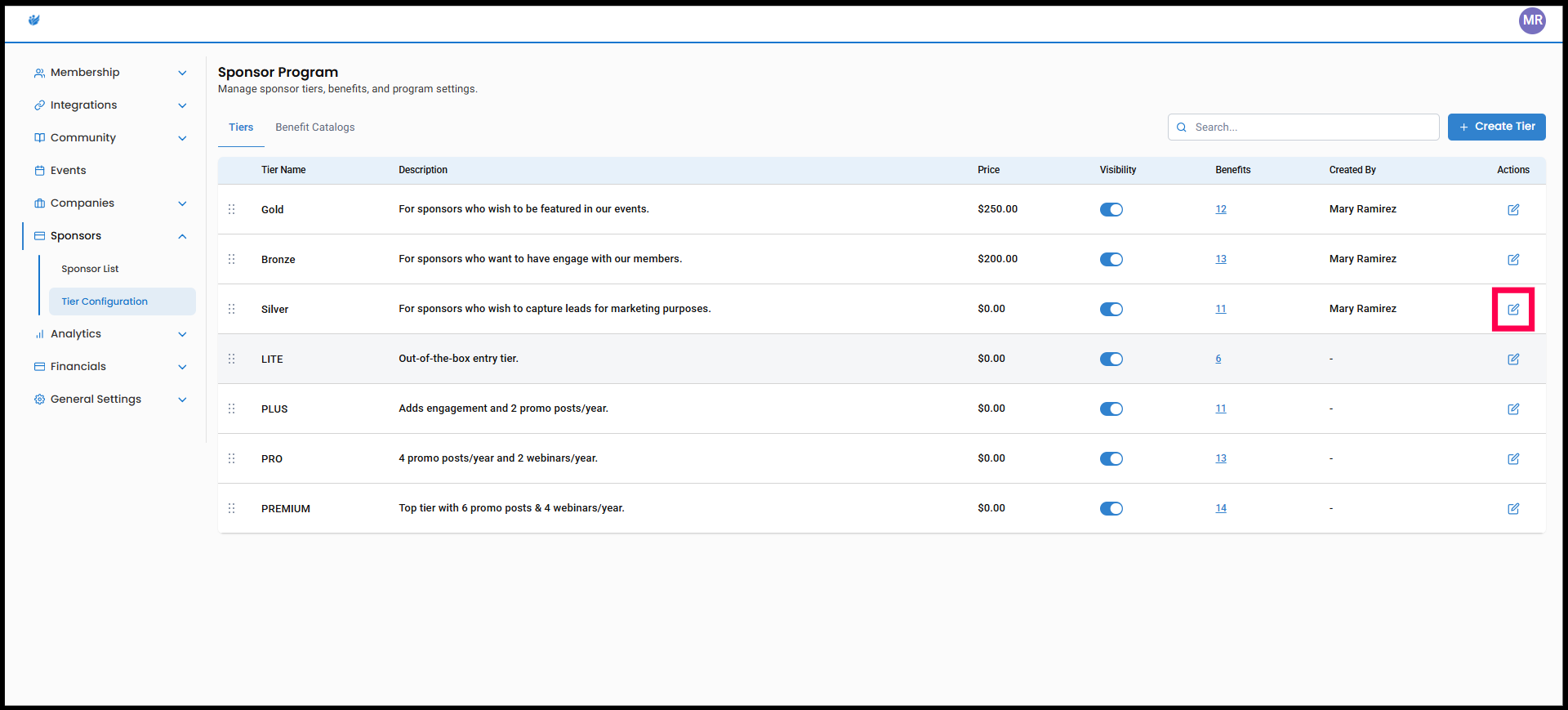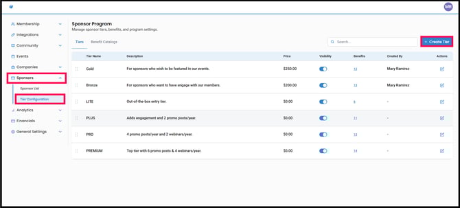 Create Sponsor Tiers and Manage Sponsor Contracts