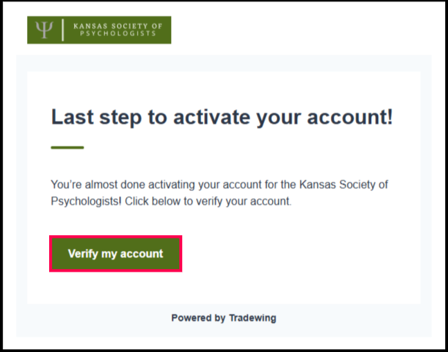 5) You will receive a verification link in your email inbox. Please check your email for a message from the association.