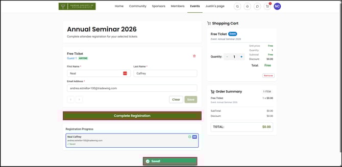 12) Once you have saved your information, click Complete Registration.