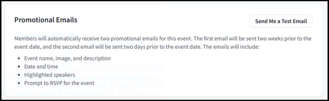Sponsors at the Pro and Premium tiers have the ability to automate email promotions for community webinars targeted at members. They will receive two automated emails: the first will be dispatched two weeks before the event, while the second will be sent two days before the event date.