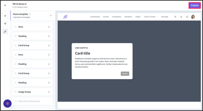 9) Once you are satisfied with how your page looks like, and which groups you wish to include in the template of your page, you can finalize all changes by clicking on "Publish".