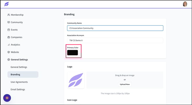 4) To select your primary branding color, click on the designated button. The color you choose will be displayed in the highlighted areas of your community, enhancing its visual identity.