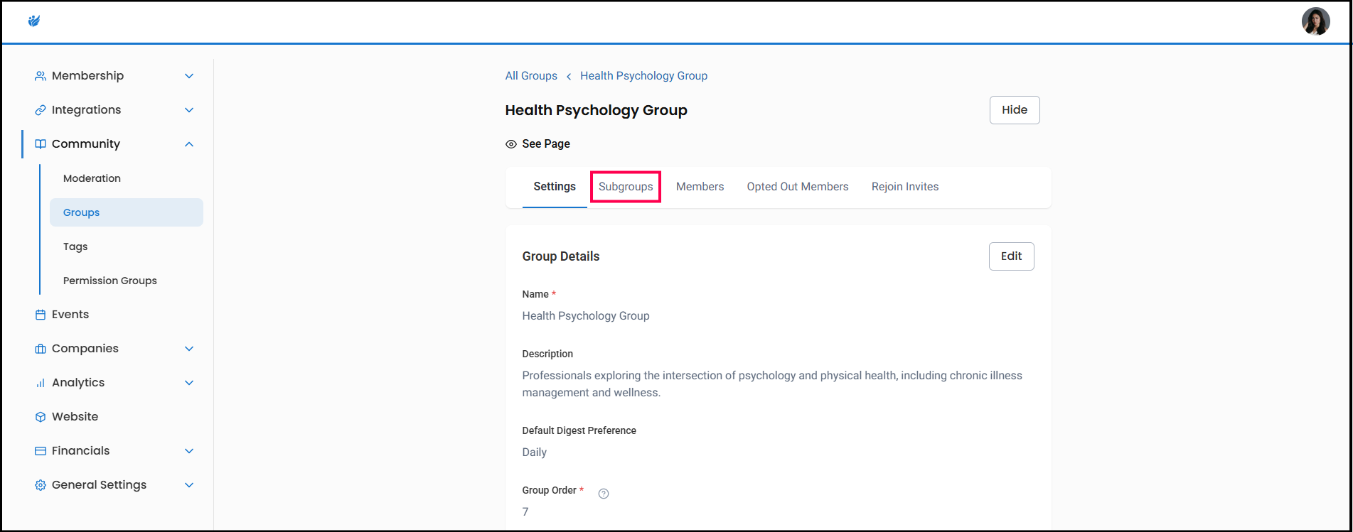 Note: Subgroup settings can only be the same or more restrictive than the parent group's settings.
