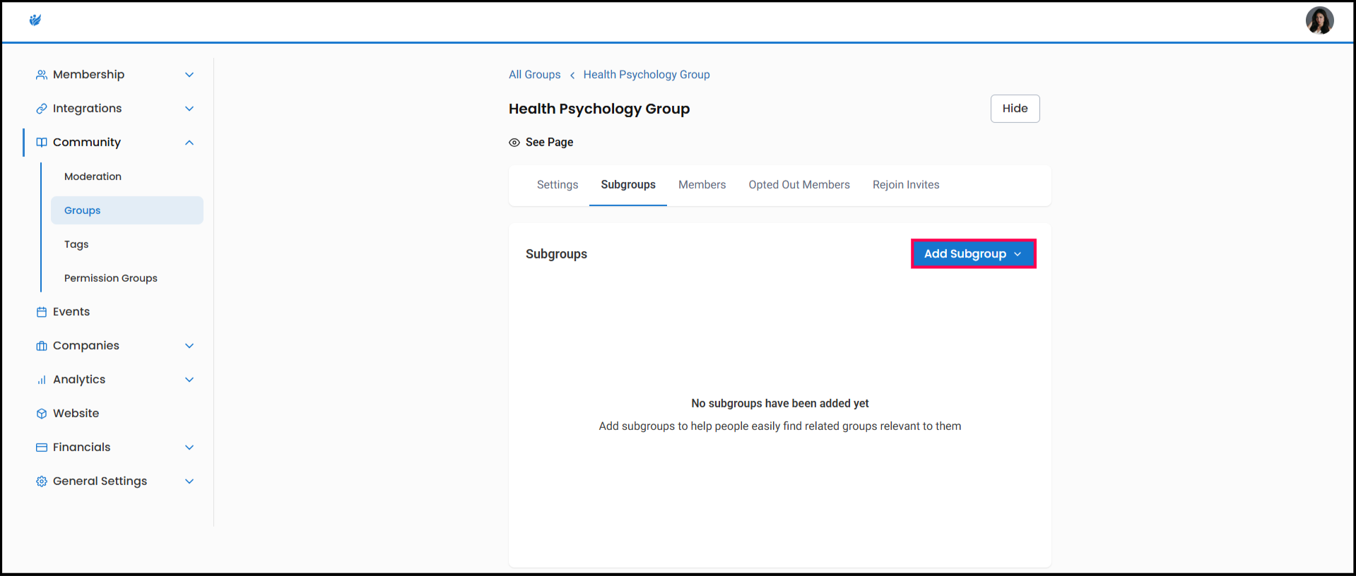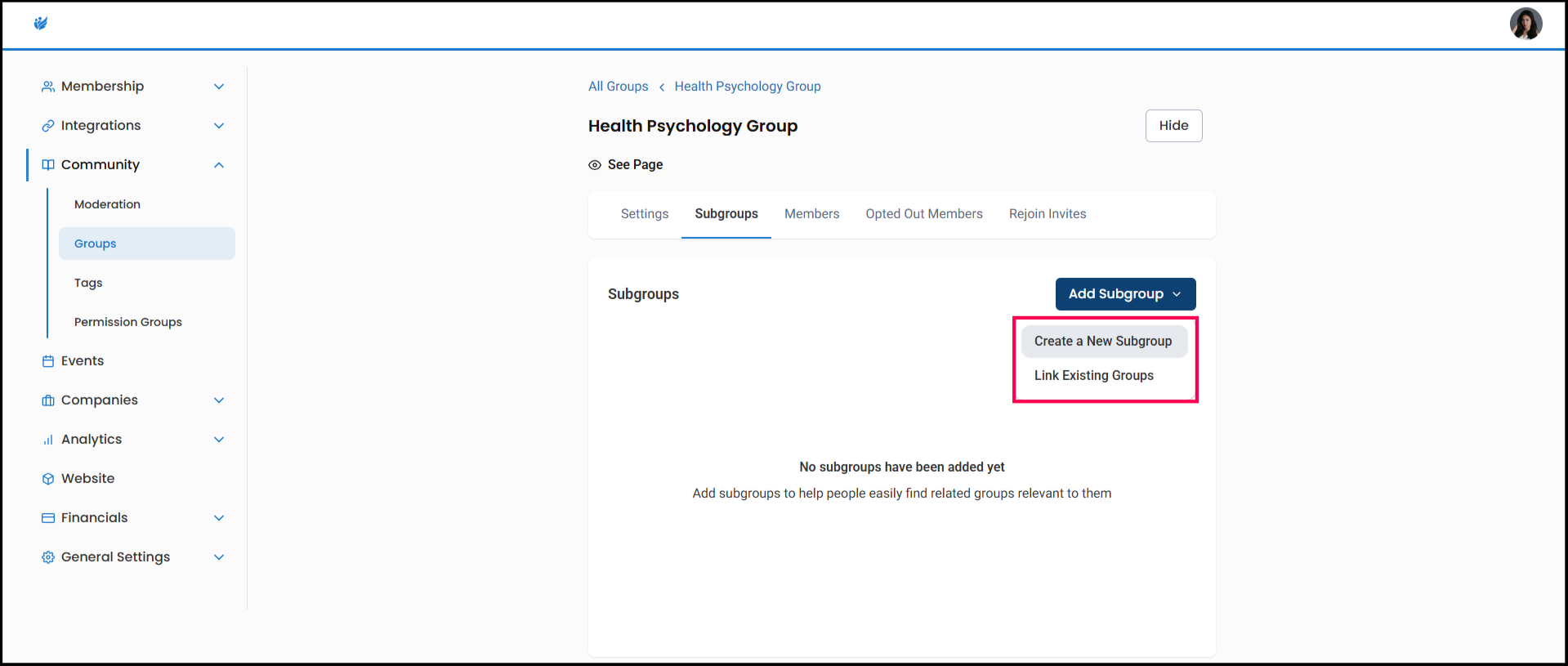 7) You can click on "Create a New Subgroup" or "Link Existing Groups"
