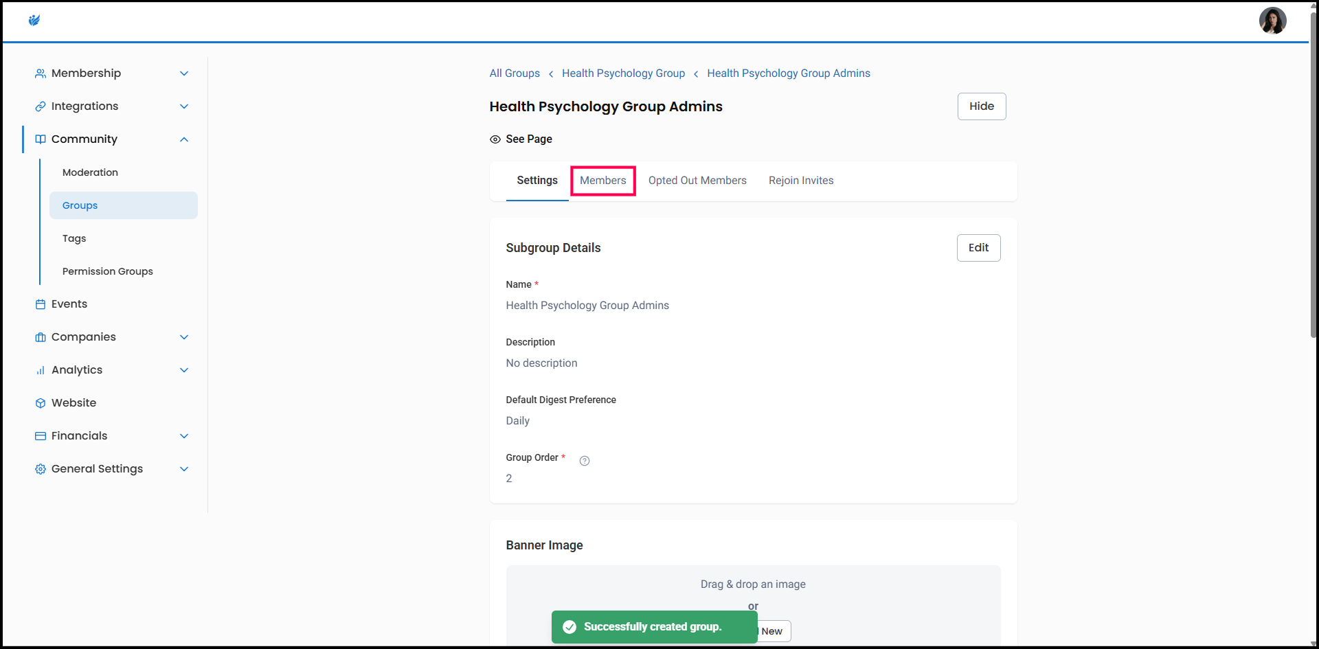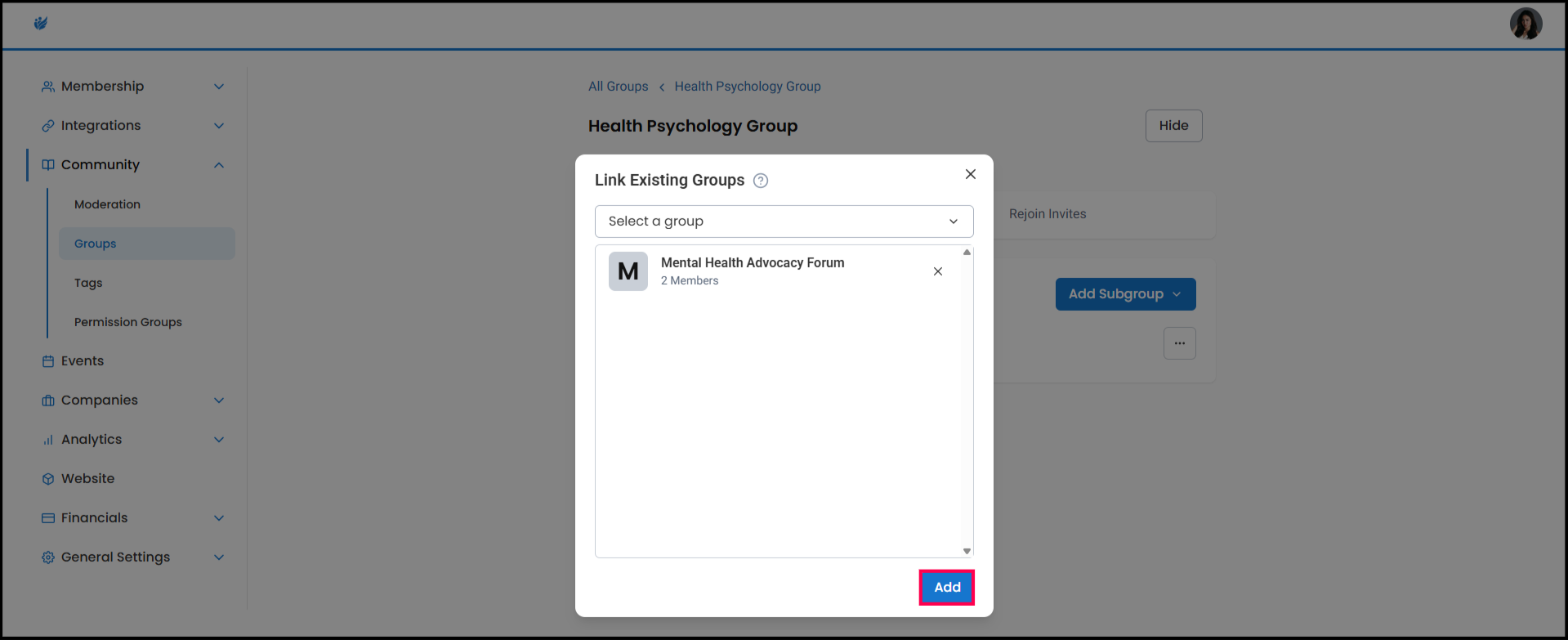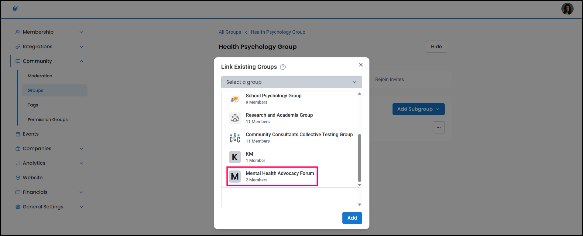(For example, if you linked "Poodle Owners" as a subgroup within the group "Dog Friends," the members of "Poodle Owners" would also now be members of the parent group, "Dog Friends.") If you choose to later unlink the subgroup, those members will still remain in the parent group.