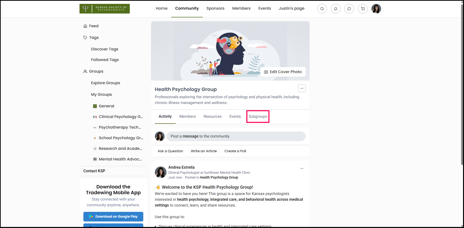 5) The parent group now has a "Subgroups" tab on the group page where you can view and join the subgroups.