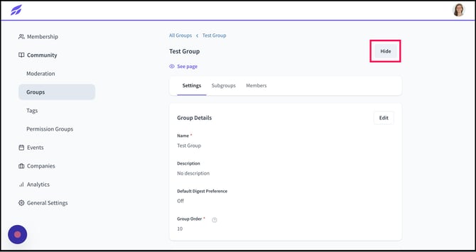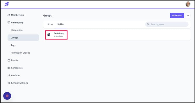 Groups that were created on Tradewing cannot be permanently deleted. However, you can designate groups as hidden if you wish to remove them from visibility. This will ensure that the group does not appear on the member site and members cannot access its contents.