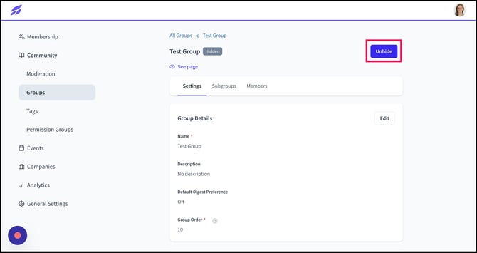 10) You can "unhide" your group at any time by clicking the button "Unhide."