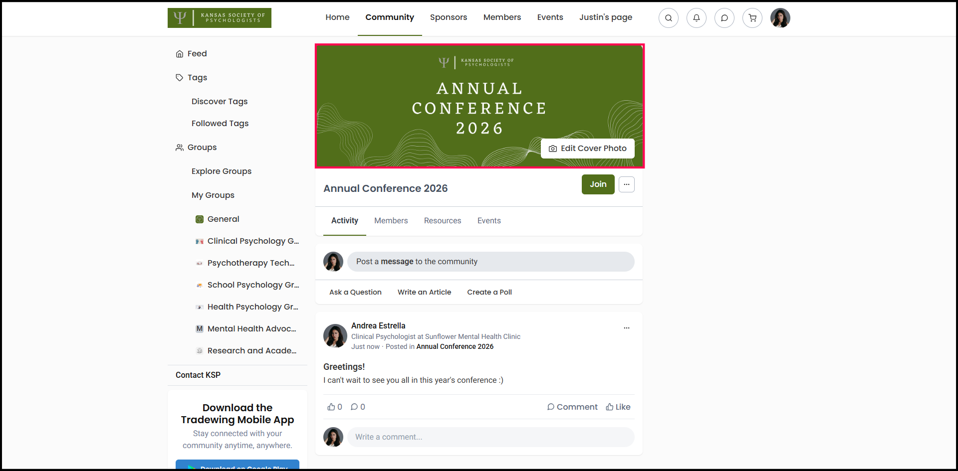 The Group Cover Photo is prominently featured as the primary visual when members access the group. This image should be 1600 pixels in width and 600 pixels in height to ensure optimal display quality.