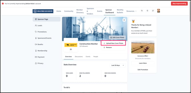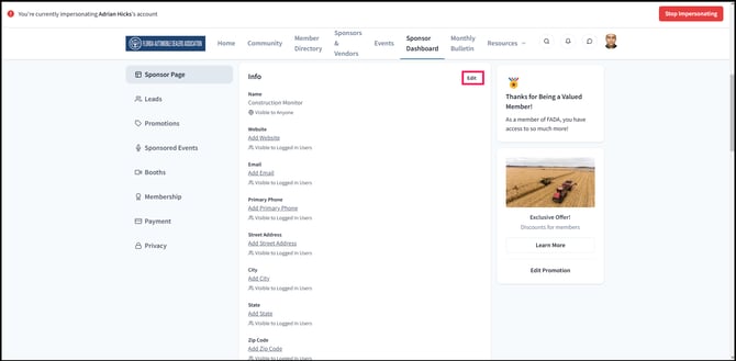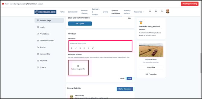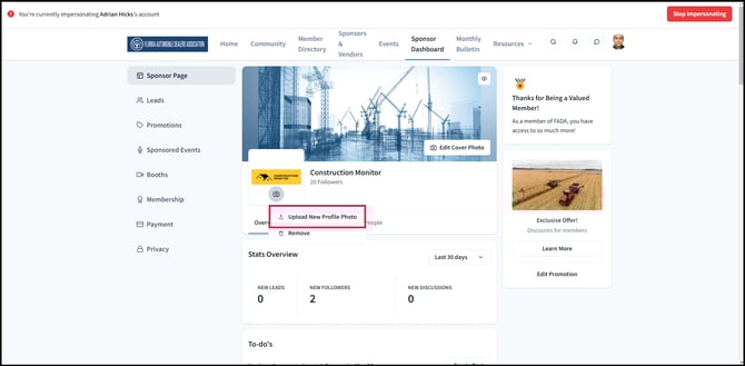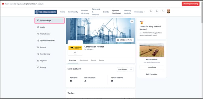 Once they log in, they can set up the branding for the sponsor page and interact with members based on their sponsorship tier.