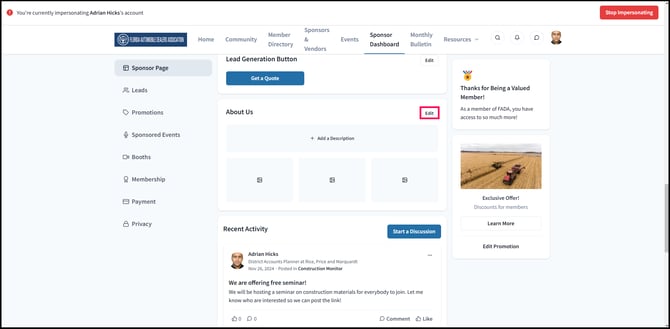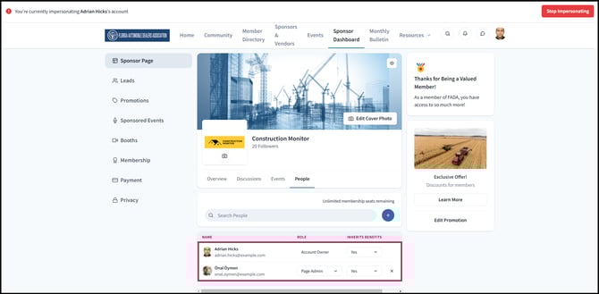 - Members & My Company's Admins who are designated as administrators of the association and as company admins for your sponsor page.