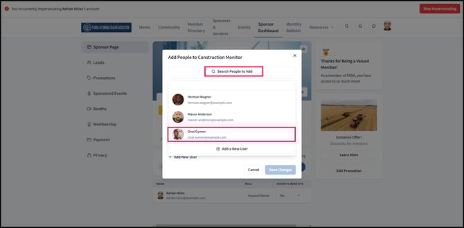 10) You can select from the list of currently logged-in users within the association. Simply click on the "Search People to Add" option and enter their name to find them.