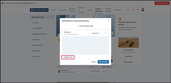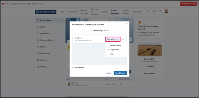 11) Choose the role of the Page Admin so they can make changes to your sponsor page. Additionally, you may choose a user role that limits their capabilities to view-only access, which restricts them from making any changes but allows them to stay informed about the sponsor page's activities.