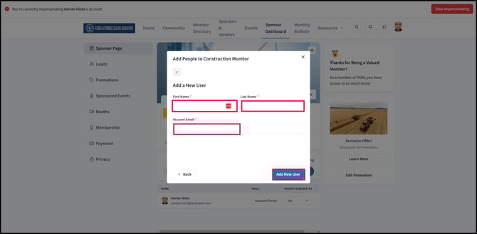 13) Enter the individual's First Name, Last Name, and Account Email address for the person you wish to add.