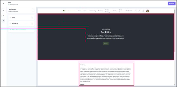 The Mixed Content template includes both the Hero and Rich Text sections, along with additional features such as headings, card groups, and an image group.