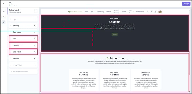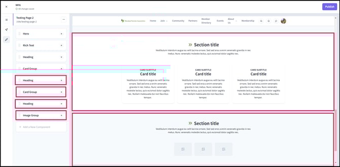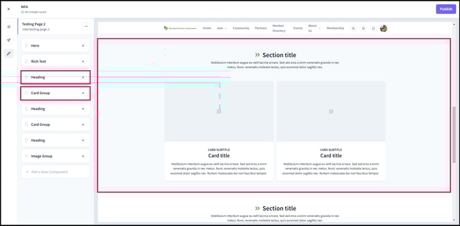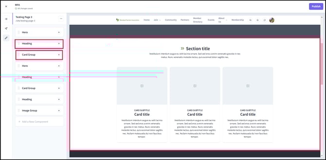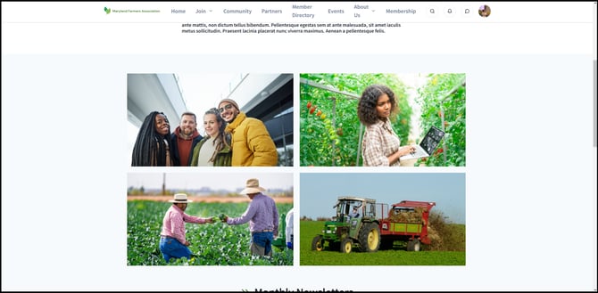 Tips: You can also link articles or feature your sponsors within the cards and image groups. This can help attract viewers to join events, become members, or even sponsor your association. This is also a great way to engage your audience and encourage participation.