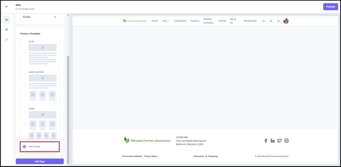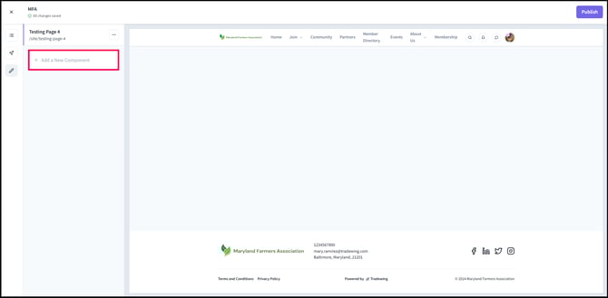 The website builder feature of Tradewing enables admins to create and publish webpages and entire websites without requiring assistance from a technical expert. Designed to be simple and user-friendly, it allows admins to build webpages independently, catering to the specific needs of their association.
