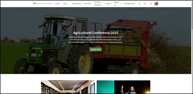 - The Hero section features a prominent banner image at the top of the webpage, designed to grab the viewer's attention and effectively convey the identity of the association. Learn more about Hero Images